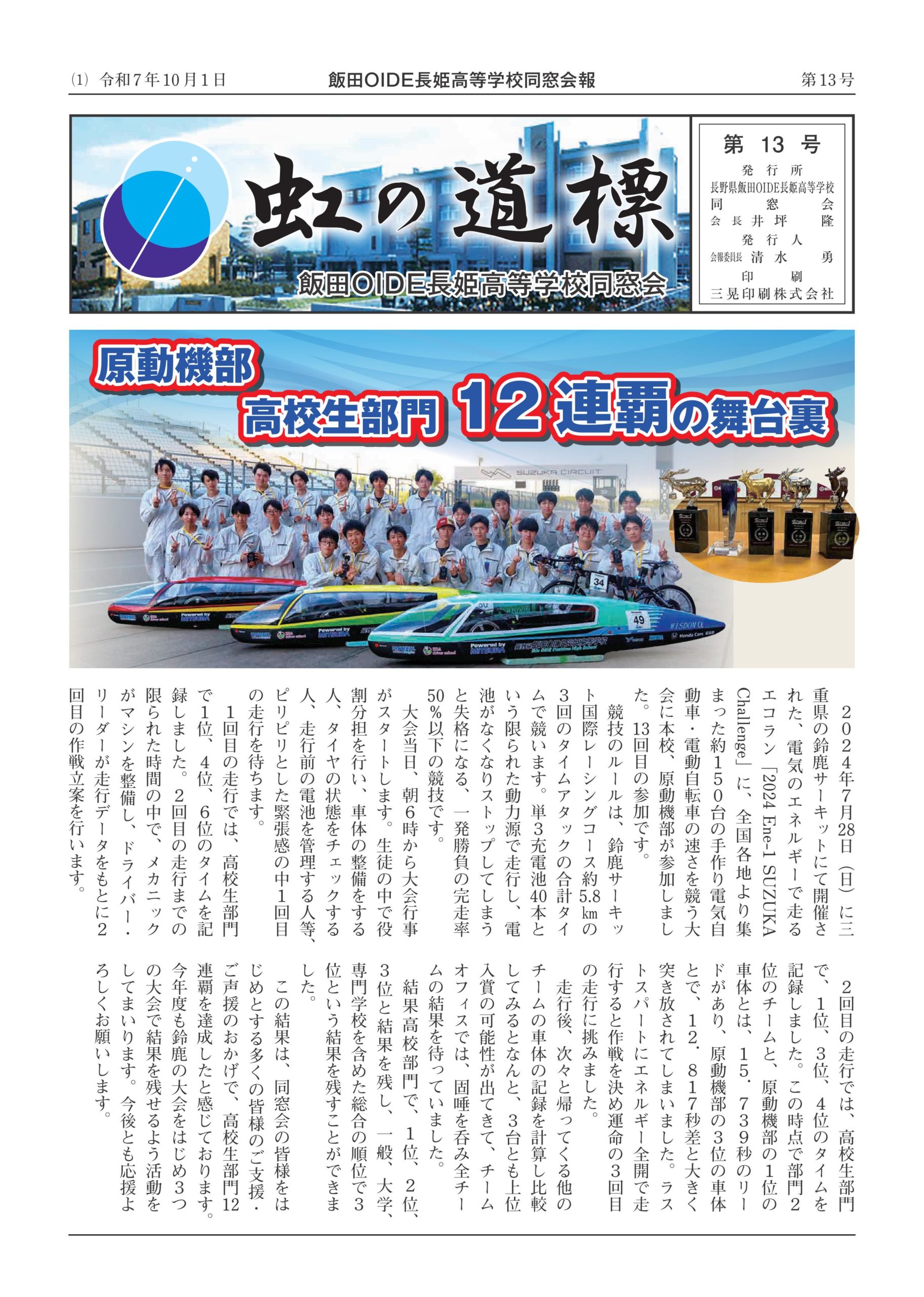 1面: 原動機部高校生部門12連覇の舞台裏
